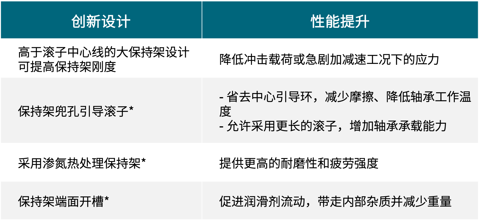 *只有铁姆肯公司将这些特性作为标准设计用于全系列钢保持架轴承产品。